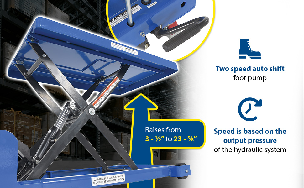 CART-900-LP-AS CART-900-LP-ASSteel Low Profile Scissor Carts with Auto Shift 23-5/8 In. x 35-1/2 In. 900 Lb. Capacity BlueCapacity: 900 lbs.