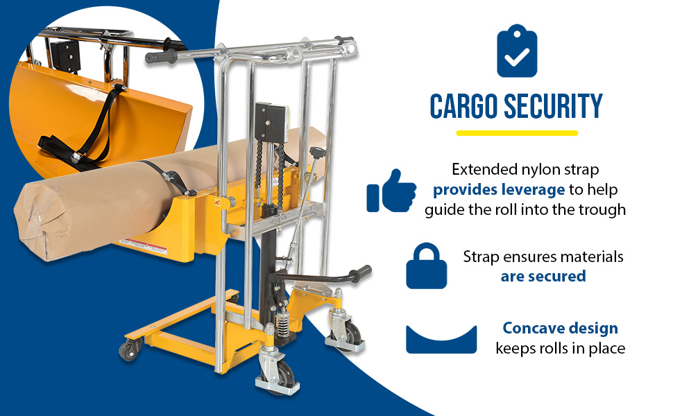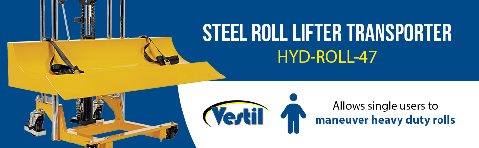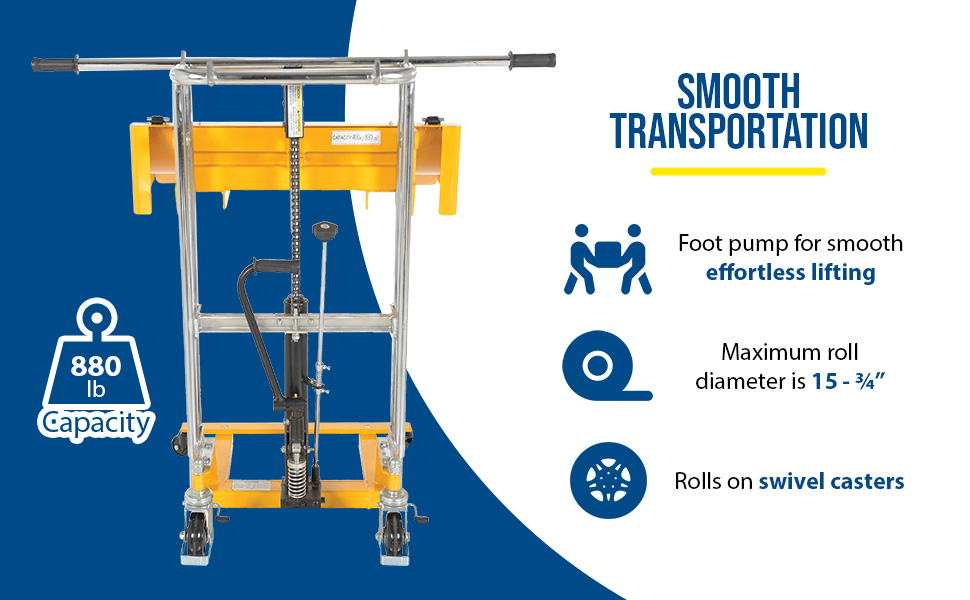 HYD-ROLL-47 HYD-ROLL-47Steel Roll Lifter Transporter 15-3/4 In. Roll Diameter 880 Lb. Capacity YellowUniform Capacity (lb.): 880