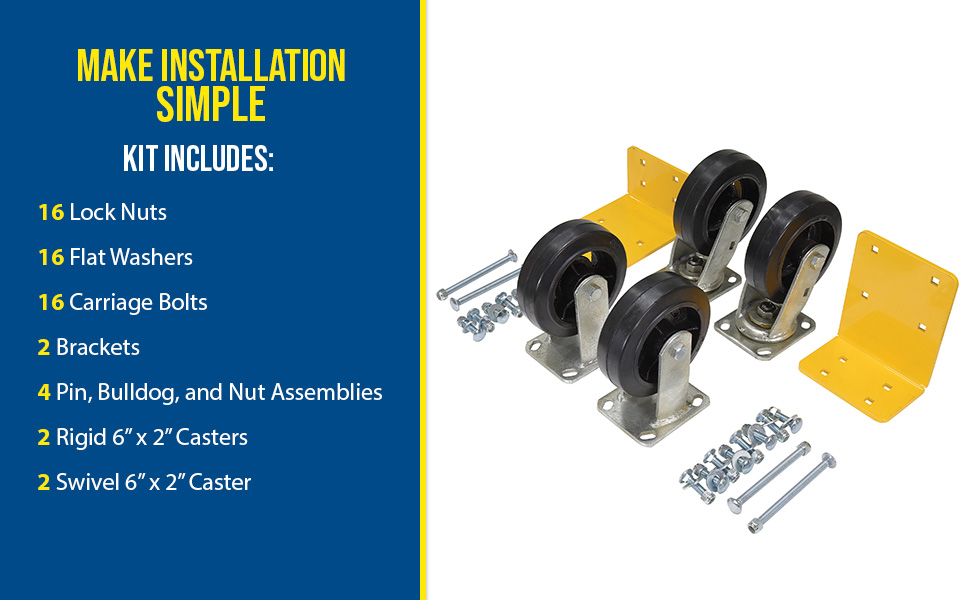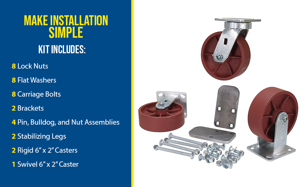 H-CK4-SC6-2HD H-CK4-SC6-2HDDuctile Steel Caster Kit 6 In. x 2 In. 8,000 Lb. Capacity MaroonUniform Capacity per caster (lb.): 8,000
