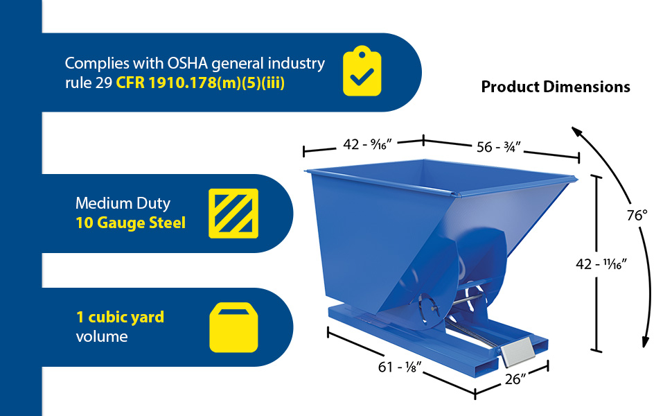 | Steel Heavy Duty Self Dumping Hopper 1 Cubic Yard 6000 Lb. Capacity Blue | Uniform Capacity (lb.): 6000 Steel (gauge): 8 | 580 |