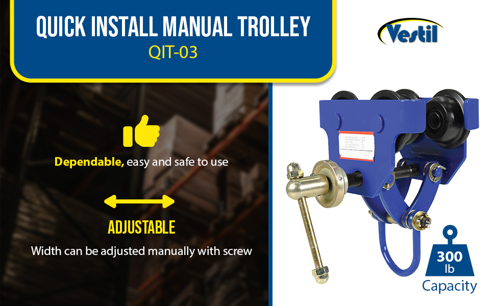 QIT-12 QIT-12Steel Quick Install Manual Trolley 13-5/8 In. x 20-3/16 In. x 20-3/8 In. 12000 Lb. Capacity BlueUniform Capacity (lb.): 12,000
