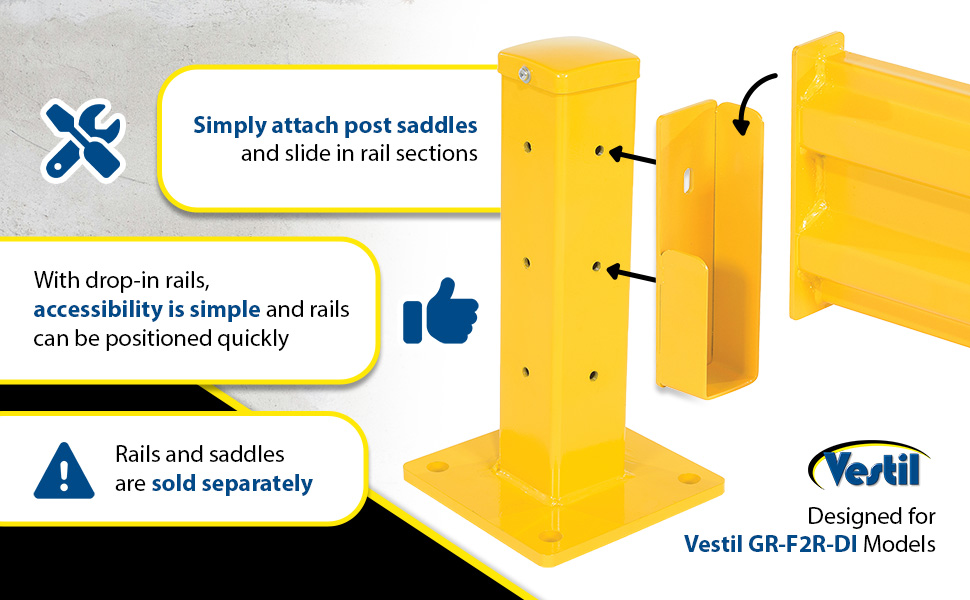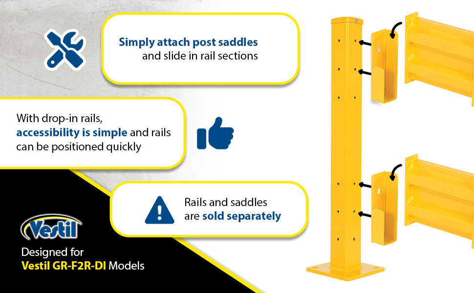 GR-F2R-DI-4-YL GR-F2R-DI-4-YLSteel 2 Ribbed Drop In Style Guard Rail 42 In. Length YellowMounting Post (qty.): 2
