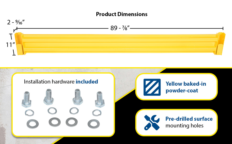 GR-F3R-BO-2-YL GR-F3R-BO-2-YLSteel 3 Ribbed Bolt On Style Guard Rail 24 In. Length YellowImpact Capacity (Lbs.): 10,000