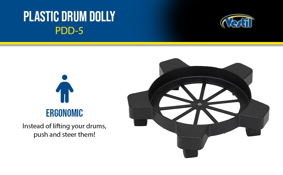 PDD-5 PDD-5Plastic Drum Dolly for 14-3/4 In. x 14-3/4 In. x 3-3/4 In. 5-7 Gallon Buckets 80 Lb. Capacity BlackUniform Capacity (lb.): 80
