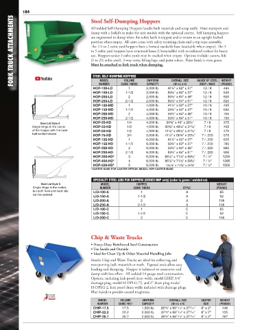 FORK TRUCK ATTACHMENTS dump with a forklift or make the unit mobile with the optional casters. Self dumping hoppers