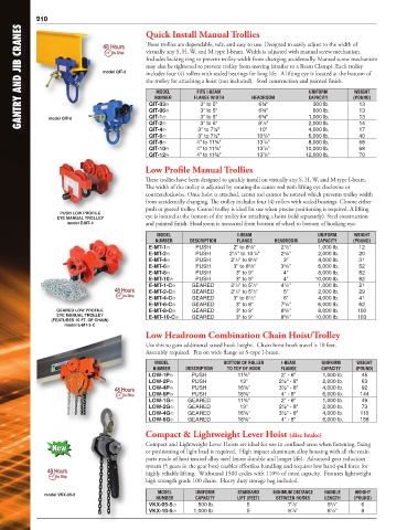 GANTRY AND JIB CRANES model QIT-2 virtually any S, H, W, and M type I-beam. Width is adjusted with manual screw mechanism.