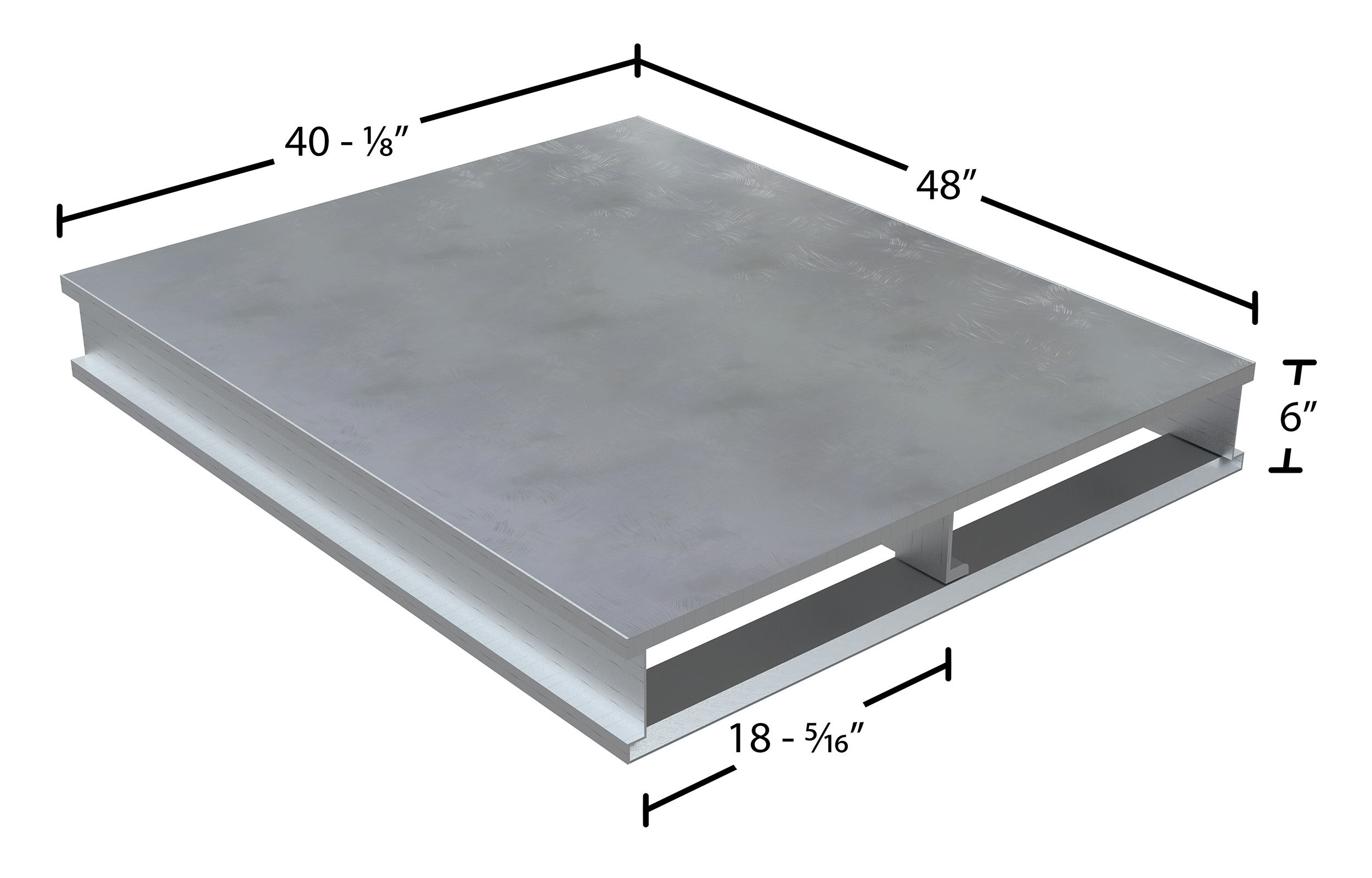 Aluminum Heavy Duty Solid Top Pallet 48 In. x 40-1/8 In. x 6 In. 6000 Lb. Capacity SilverA welded Aluminum pallet is a great asset for a variety of industries. The open design enables quick and simple cleaning. This pallet is durable and re-usable with a two-way entry for pallet and fork truck use. Large static capacity allows for load both big and small.