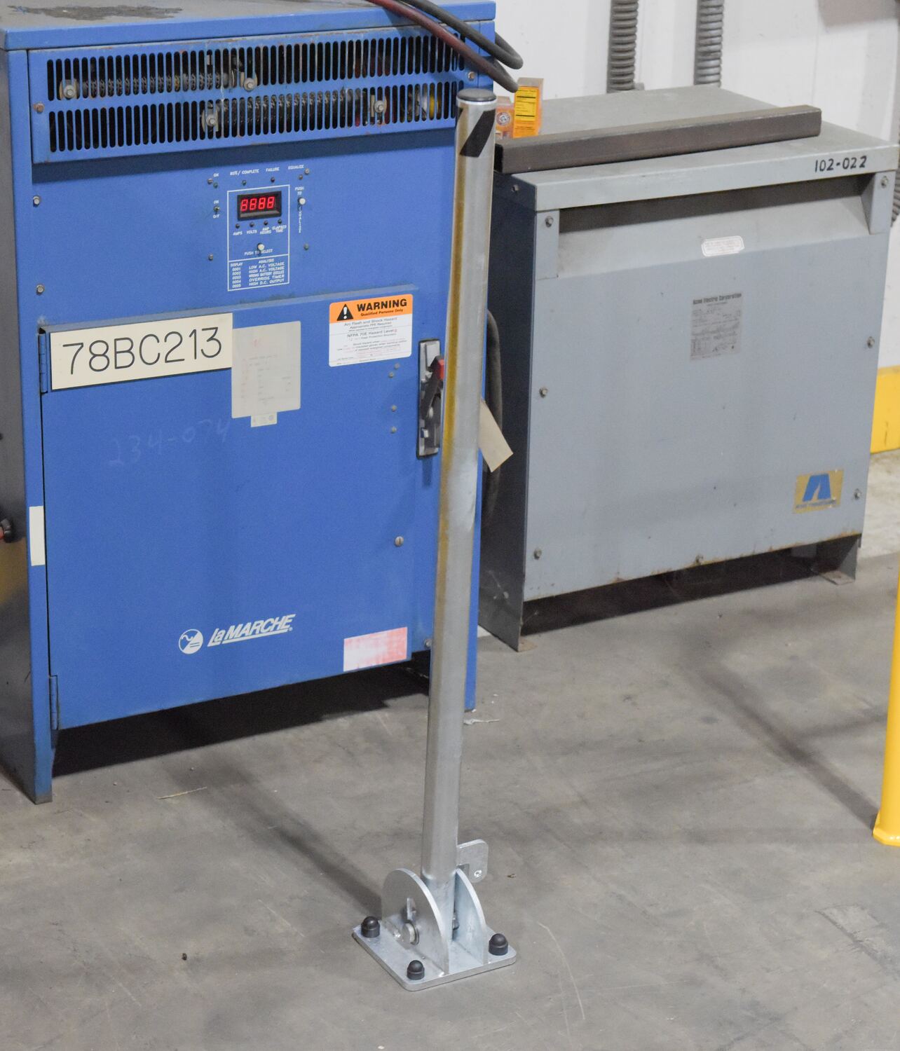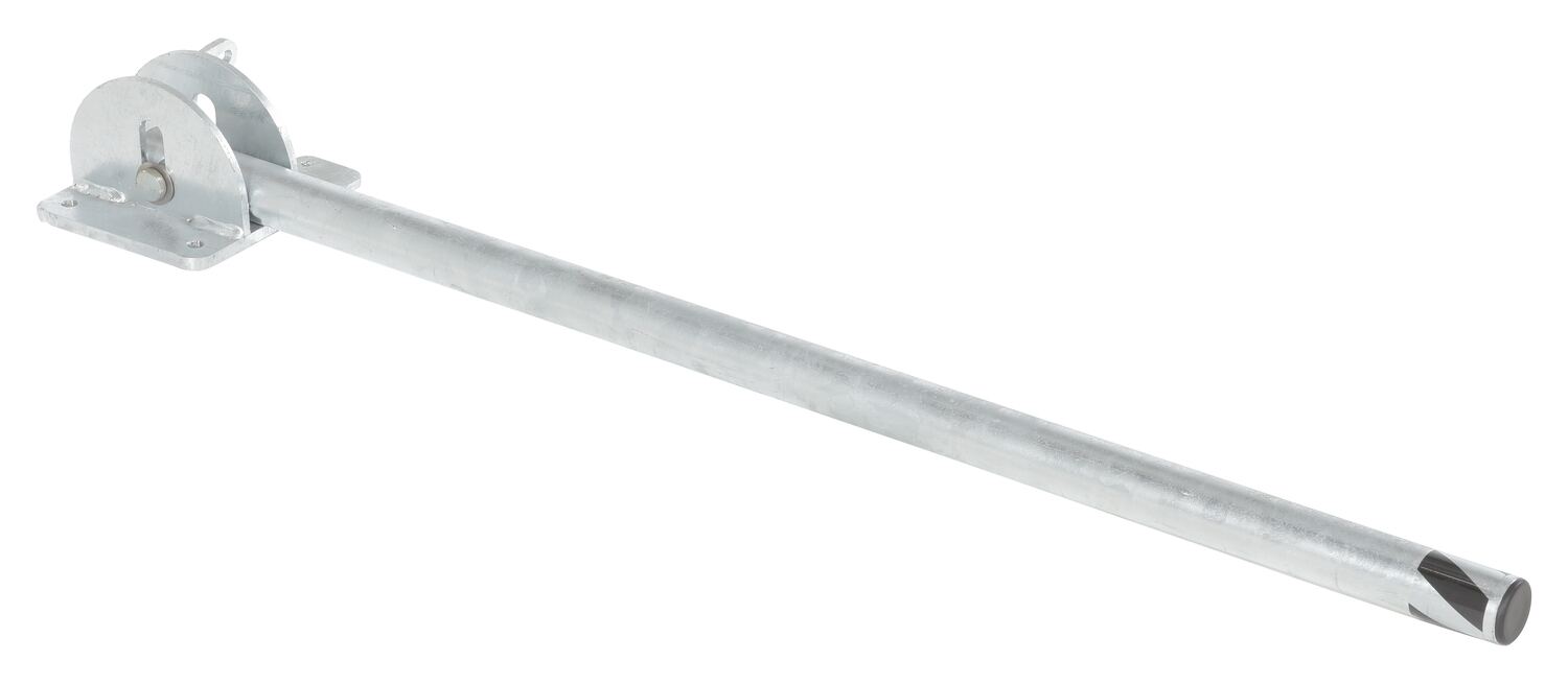 Steel Fold-Down Galvanized Bollard 42 In. SilverFolding steel barrier post for parking control and security. This folding bollard is locked in the raised position with a padlock (padlock not included). When padlock is removed, bollard may be lowered to ground to allow for access. Steel construction.