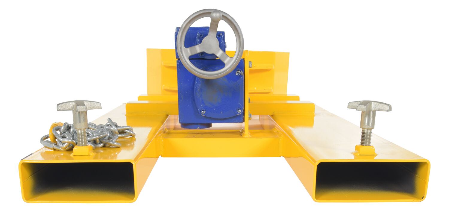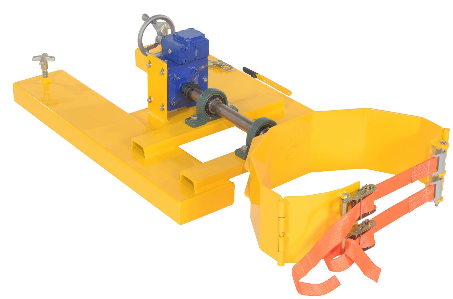 Steel Right Angle Drum Rotator Fits 55 Gallon Steel, Plastic, or Fiber Drums 1,200 Lb. Capacity YellowA right angle drum rotator provides an efficient way of maneuvering drums. The manual design enables the user to precisely place the drum at the needed angle. With accessible fork pockets and a steel construction, once the drum is in place the user may situate the drum at variety of positions. The rotator itself contains a 1200 lb. capacity.
