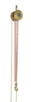 Non-sparking brass construction. Brake engages automatically as soon as the hand chain stops moving. Forged load hooks. Low gear ratio reduces effort required for lifting. Satisfies relevant ANSI B30.16-2003 requirements.