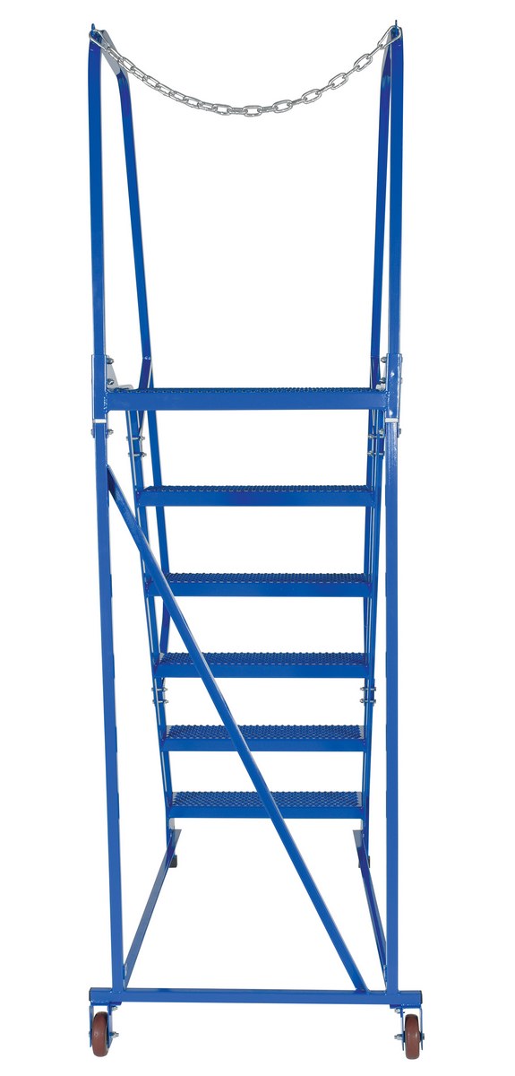 Steel Maintenance Ladder 58 Degree 6 Perforated 24 In. Step Width 350 Lb. Capacity BluePortable maintenance ladder for use around a variety of stores and inventory rooms. Constructed of square tubing framework, which handles uniform capacities up to 350 lbs. hand railing provides user safety while ascending or descending the unit. Distance between steps is 10". Powder coated finish for baked in added toughness.