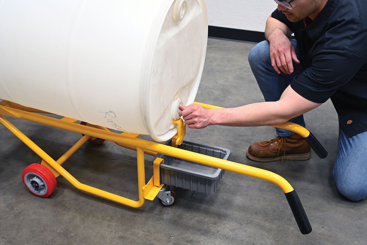 Optional drip pan with brackets for the multi-purpose drum truck/cradle.