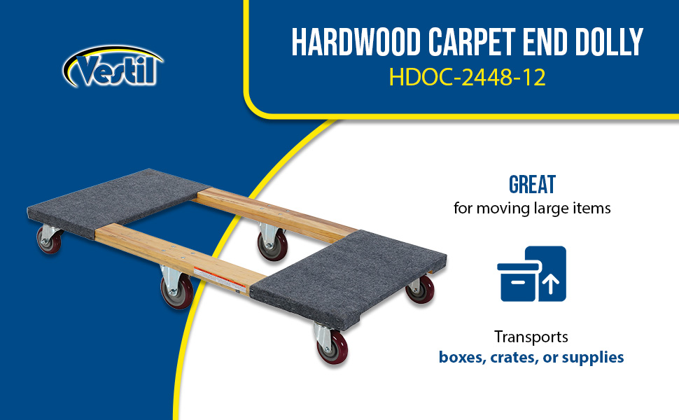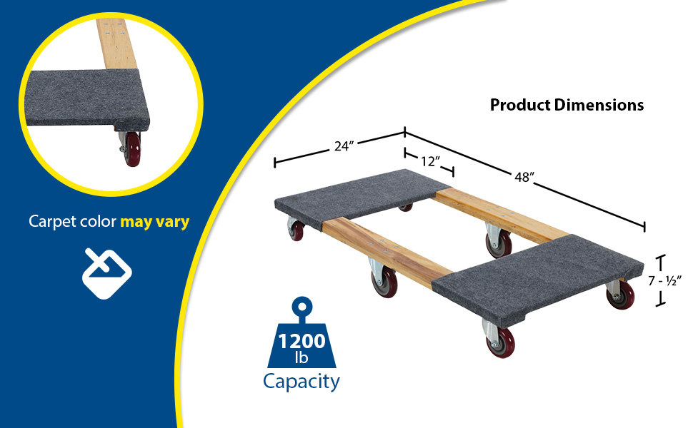 HDOC-2448-12 HDOC-2448-12Hardwood Carpet End Dolly 48 In. x 24 In. x 7-1/2 In. 1200 Lb. CapacityUniform Capacity (lb.): 1,200