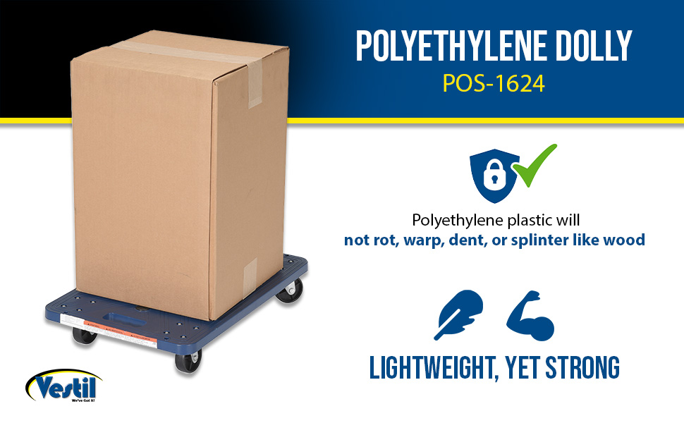 • Plastic will not rot, warp, dent, or splinter like wood dollies