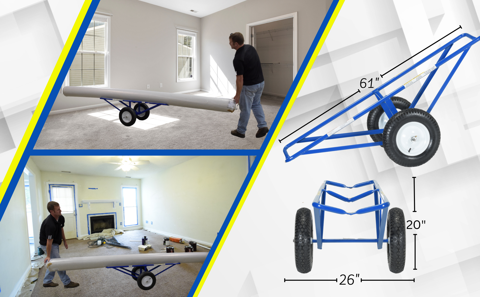 CARPET-45 CARPET-45Portable Carpet Dolly with Pneumatic Wheels 61 In. x 26 In. x 20 In. 500 Lb. Capacity BlueUniform Capacity (lb.): 500