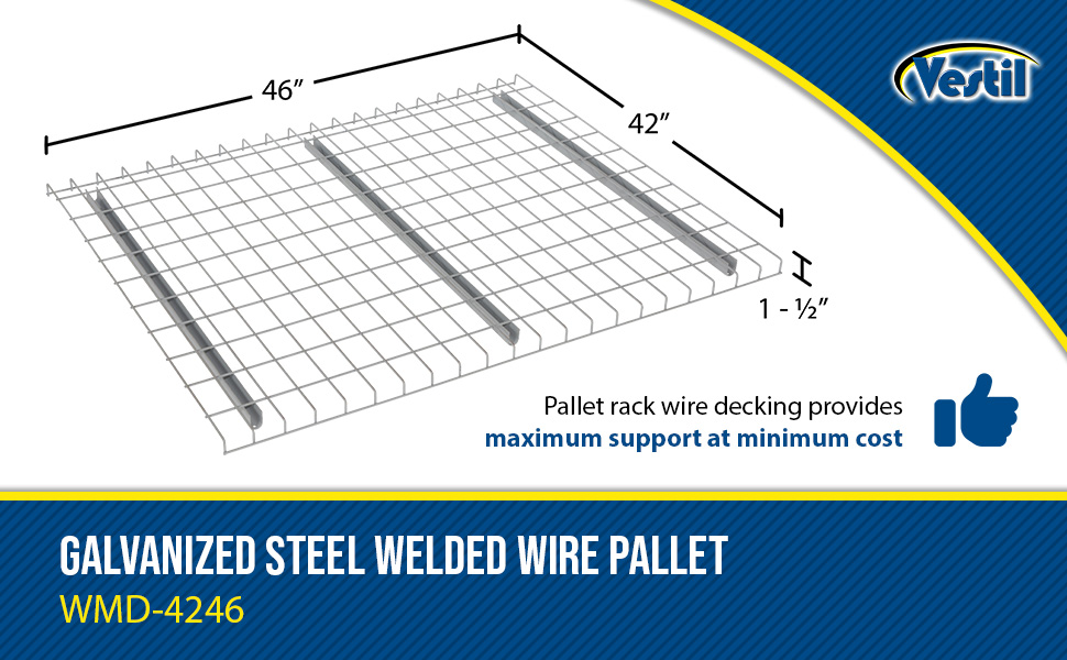 WMD-4246 WMD-4246Galvanized Steel Welded Wire Pallet 42 In. x 46 In. 2,500 Lb. Capacity GrayUniform Capacity per Section (lb.): 2,500
