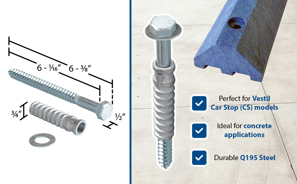 Steel Q195 Concrete Car Stop Hardware Kit 2 Pack Silver | 30 Days Limited Warranty | 2 |