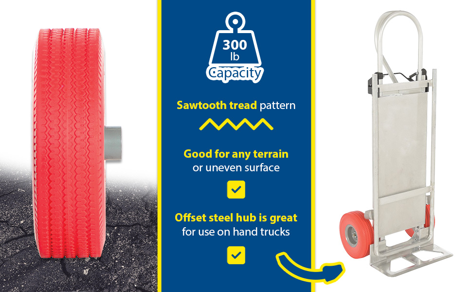 • Offset steel hub is great for use on hand trucks