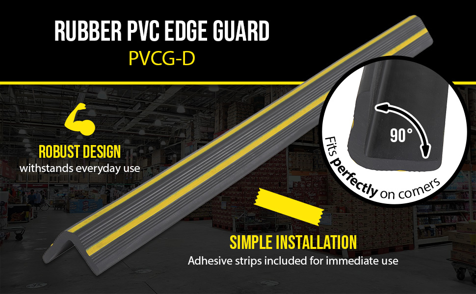 PVCG-B PVCG-BRubber PVC Edge Guard 2-3/8 In. x 3/4 In. Slot Black / YellowAttachment Method: Strap On