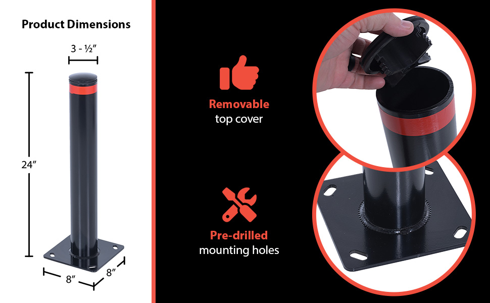 BOL-G-24-3.5 BOL-G-24-3.5Steel 24 In. x 3.5 In. Pipe Safety Bollard Garage BlackBollard Diameter: 3-1/2"