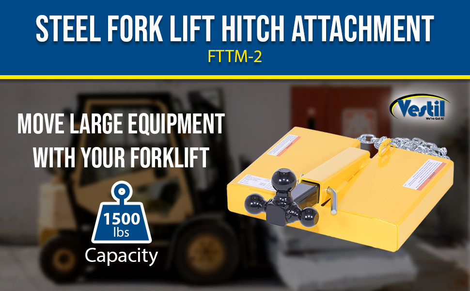The Fork Lift Hitch is a superb addition to most manufacturing and maintenance facilities. Strong steel construction allows for long term use, even in the harshest of conditions. The hitch includes a yellow finish for clear visibility. To use slide the fork lift forks in to the unit and secure safety chain to fork lift. Once in place, the unit is ready to be hitched to the desired equipment. Includes 56" long chain to secure to fork lift.