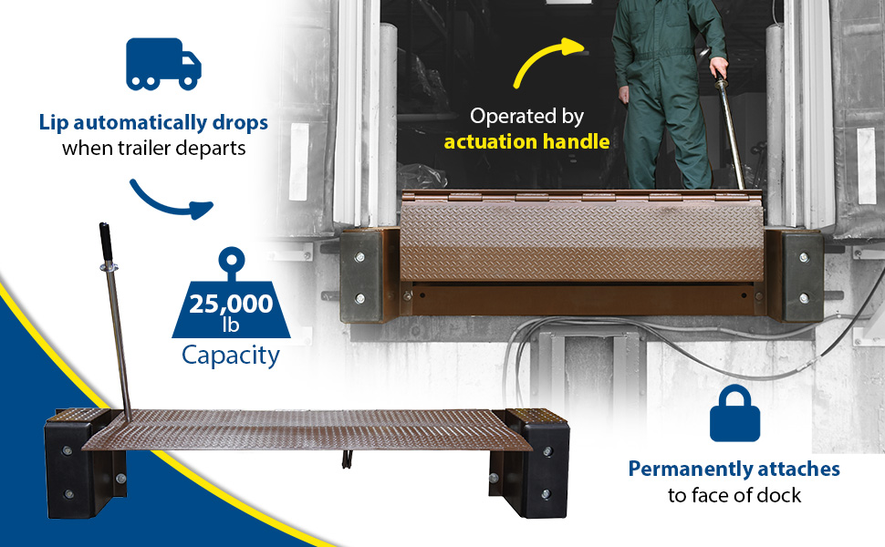 | Steel Mechanical Edge-O-Dock Leveler 72 In. Ramp Width 30,000 Lb. Capacity Brown | Uniform Capacity (lb.): 30000 Service range above dock (in.): 5 | 709 |