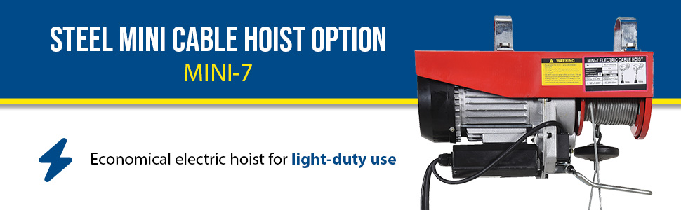MINI-7 MINI-7Steel Mini Cable Hoist Option 16 In. x 6-1/4 In. x 10 In. 750 Lb. Capacity RedSingle-Line Uniform Capacity (lb.): 750