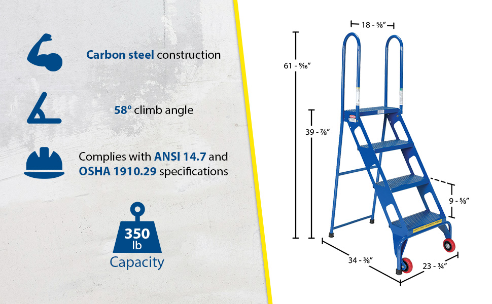 FLAD-4 FLAD-4Steel Folding Ladder with Wheels 4 Step 350 Lb. Capacity BlueUniform Capacity (lb.): 350