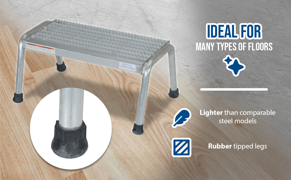 | Aluminum 1 Step Wide Stand 500 Lb. Capacity Silver | Uniform Capacity (lb.): 500 Number of Steps: 1 | 13 |