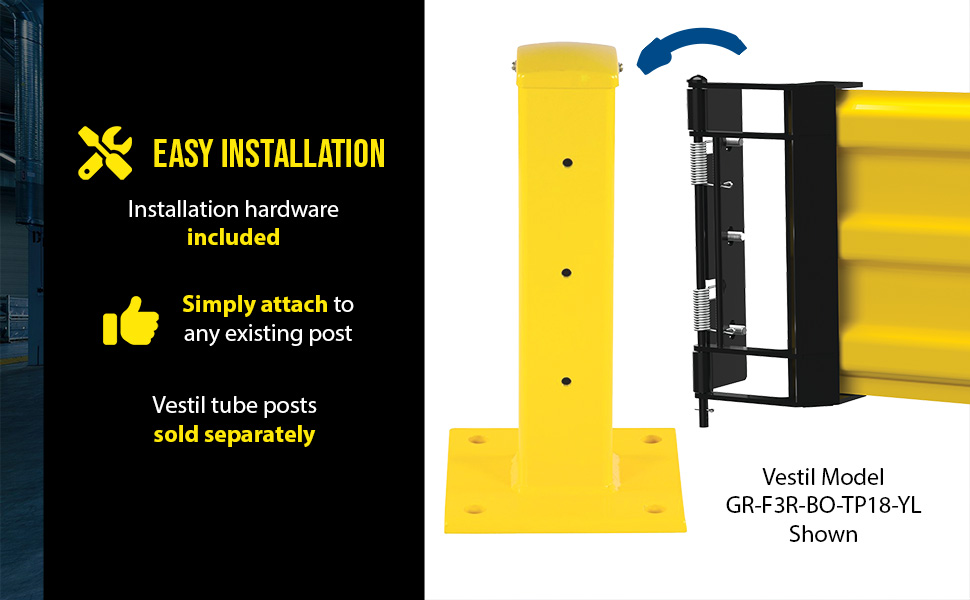 GR-F3R-GBD-4-YL GR-F3R-GBD-4-YLSteel 3 Ribbed Guard Rail Spring Gate 41.875 In. Length YellowImpact Capacity (Lbs.): 10,000