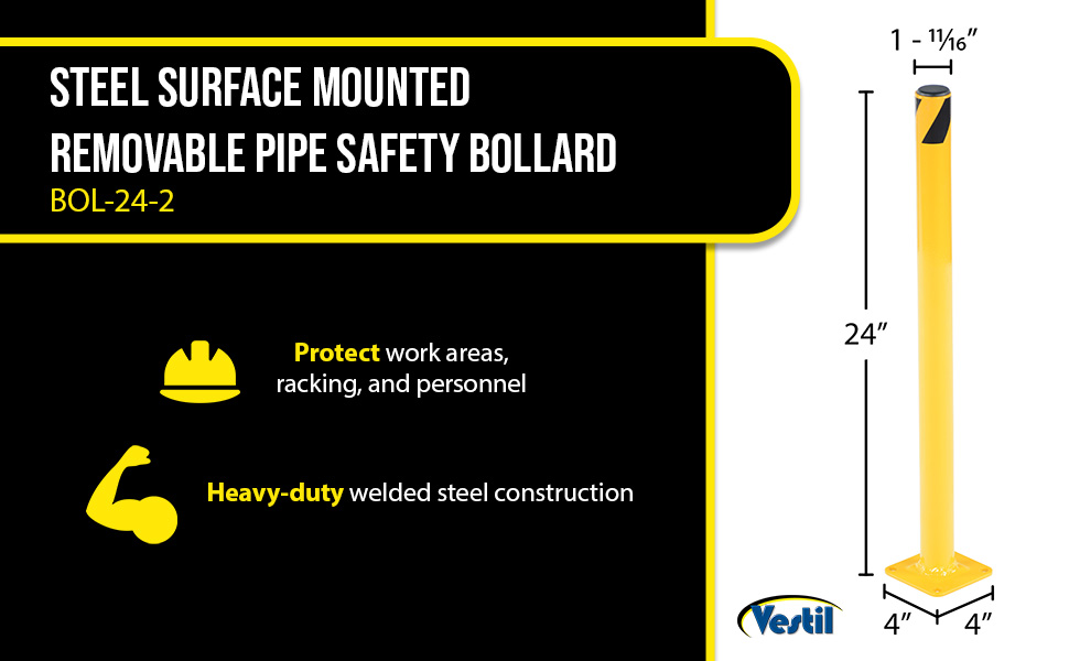 | Steel Pipe Safety Bollard 24 In. x 1-3/4 In. Yellow | Anchor Bolt: AS-383 Anchor Bolt Kit: AS-383-4PK | 6 |