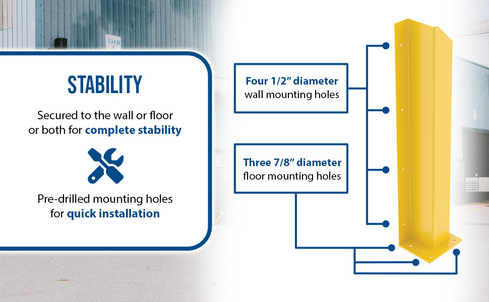DSP-WF-48-BRL-YL DSP-WF-48-BRL-YLSteel Overhead Door Track Protectors 48-1/16 In. Pair 1 Left and 1 Right YellowMounting Hole Diameter (in.): 7/8