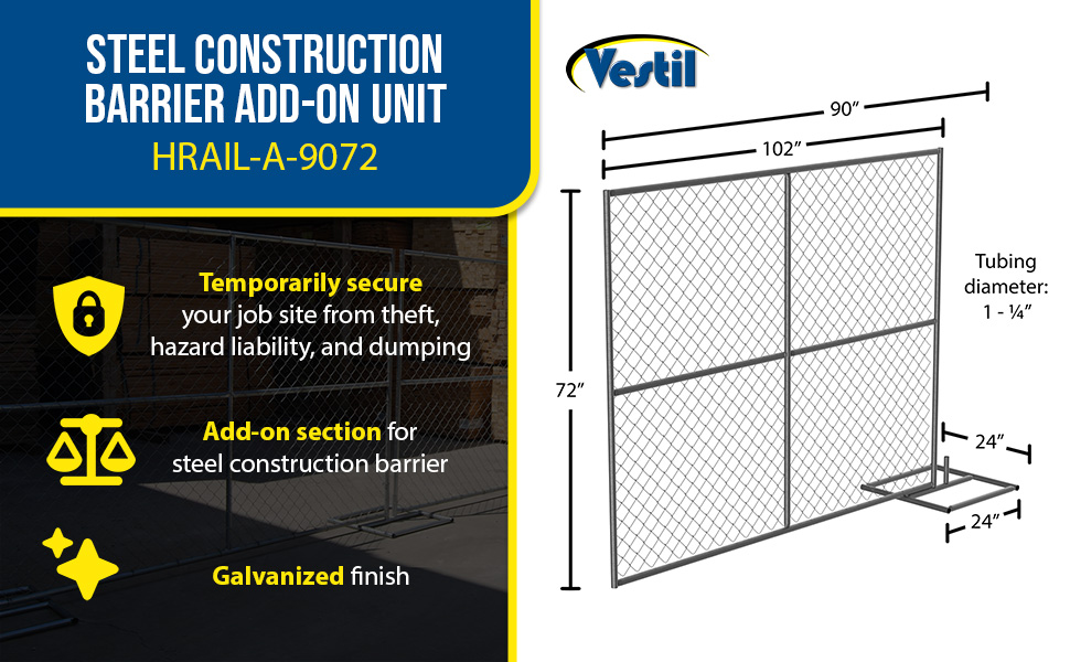 HRAIL-A-9072 HRAIL-A-9072Galvanized Steel Construction Safety Barrier Add On Unit For HRAIL-9072Panel and Base Tubing Diameter (in.): 1-1/4