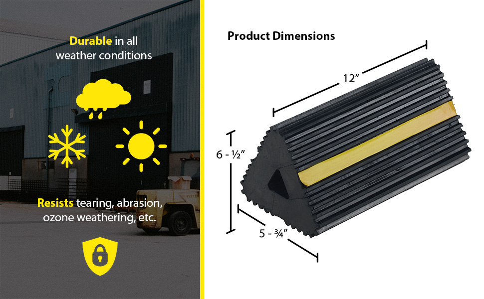 RWC-2-PR RWC-2-PRMolded Rubber Wheel Chock with Rope 8 In. x 56 In. x 4 In. BlackWheel Chock Connection: Rope
