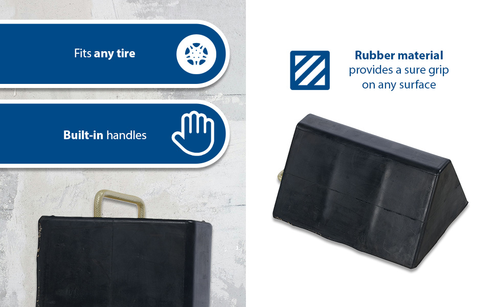 RWC-9-U RWC-9-UMolded Rubber Wheel Chock U Handle 8 In. x 11 In. x 6 In. BlackWheel Chock Connection: None