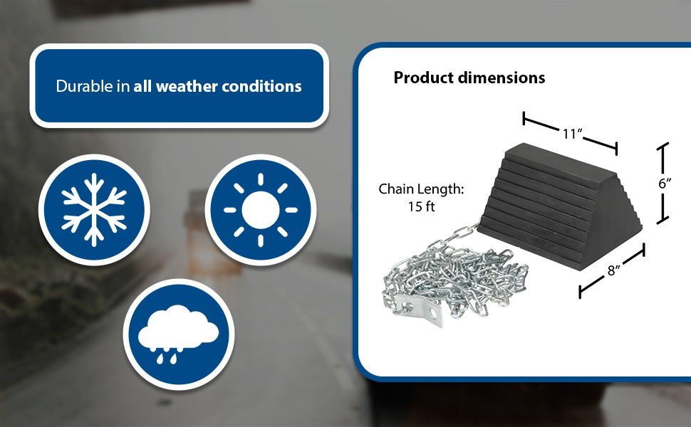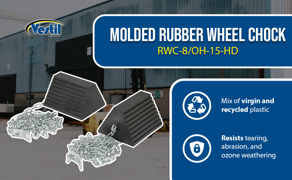 RWC-8/OH-15-HD RWC-8/OH-15-HDMolded Rubber Wheel Chock Chain Hanger 8 In. x 11 In. x 6 In. BlackWheel Chock Connection: Chain