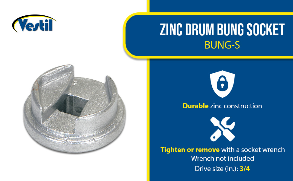 BUNG-S BUNG-SZinc Drum Bung Socket 3/4 In. Drive SizeFits Drum Plug (in.): 3/4 to 2