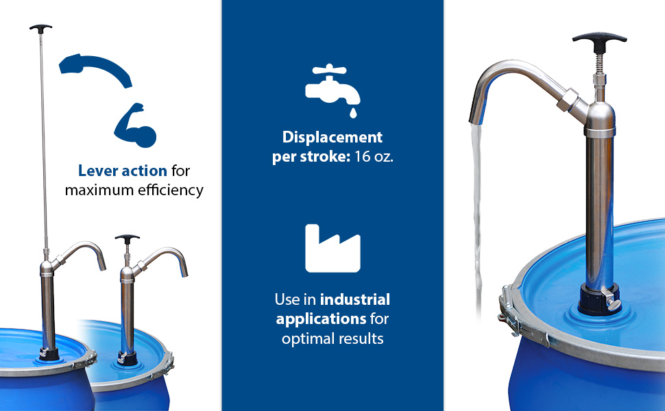 VLDP VLDPPolypropylene Manual Lever Action Drum & Pail Pump 10 Ounces GrayAccommodates: 55 gallon drum