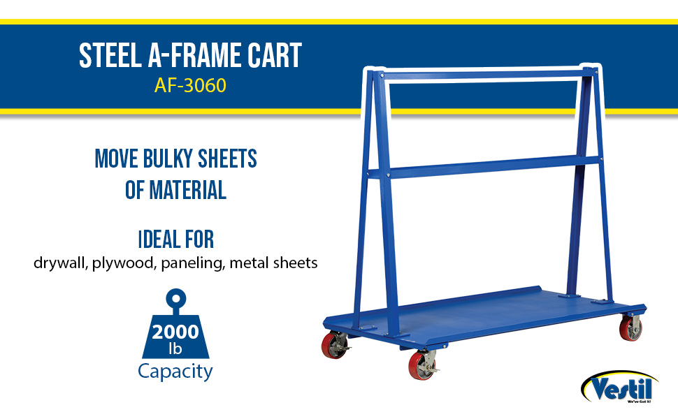AF-3060 AF-3060Steel A-Frame Cart 30 In. x 60 In. 2,000 Lb. Capacity BlueUniform Capacity (lb.): 2,000