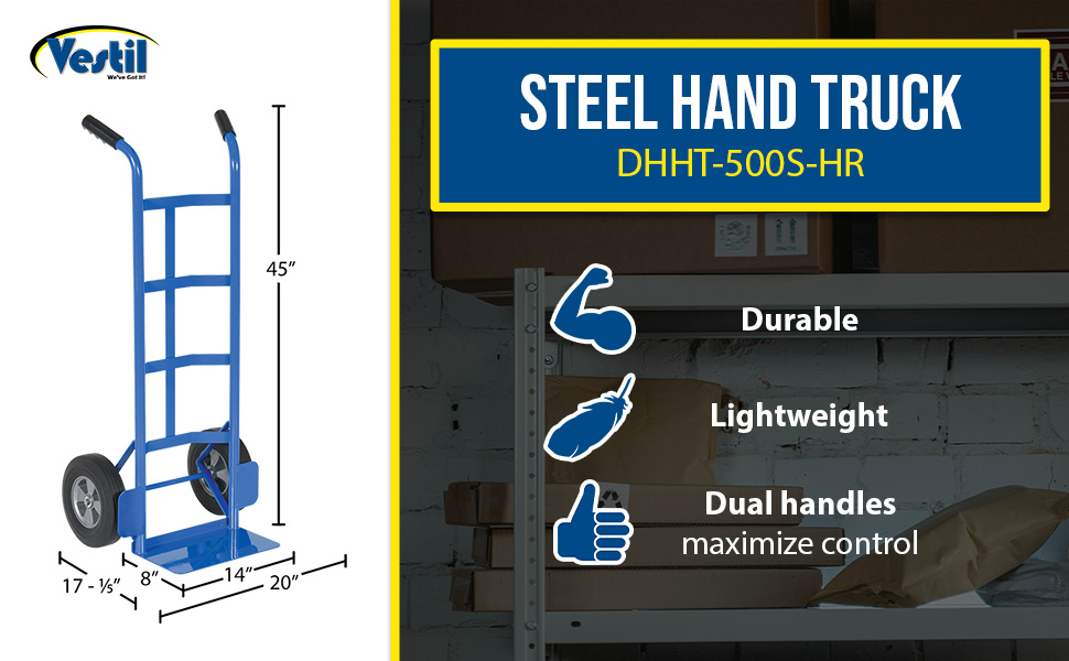 DHHT-500S-HR DHHT-500S-HRSteel Dual Handle Hand Truck with Hard Rubber Wheels 17-1/2 In. x 21 In. x 44-1/2 In. 500 Lb. Capacity SilverUniform Capacity (lb.): 500