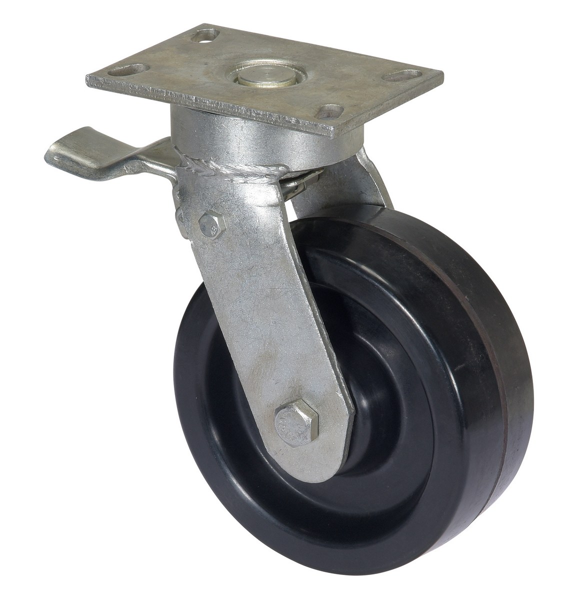 Phenolic Total Locking Swivel Casters 8 In. x 3 In. For Steel Gantry Cranes 6,000 Lb. to 8,000 Lb. CapacitySteel Gantry crane total locking caster set provides a number of benefits to an already worthwhile gantry crane. The durable construction generates a smooth roll with limited jostling. Simple to install with pre drilled mounting holes.