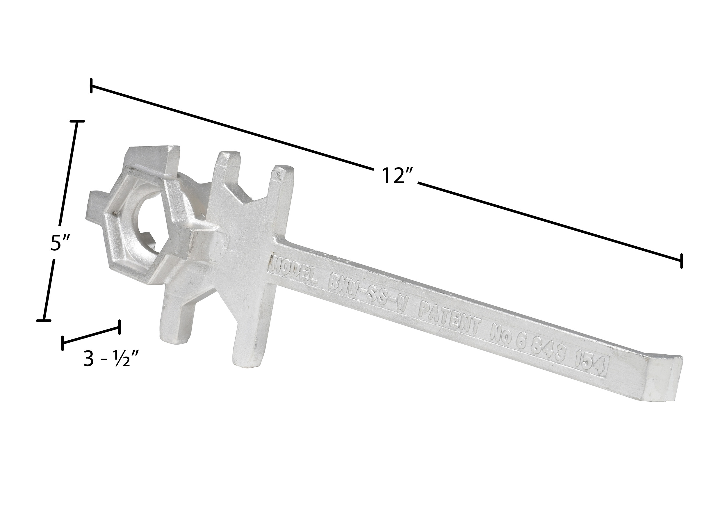 This multipurpose, single ended, cast aluminum drum Bung nut wrench not only opens and closes drum bungs or plugs, they also work as a bung wrench, ring wrench and faucet wrench all in one! Wrench fits all types of industrial drum plugs and bungs in metal or plastic. These wrenches will not bend, break or chip. Patent pending.