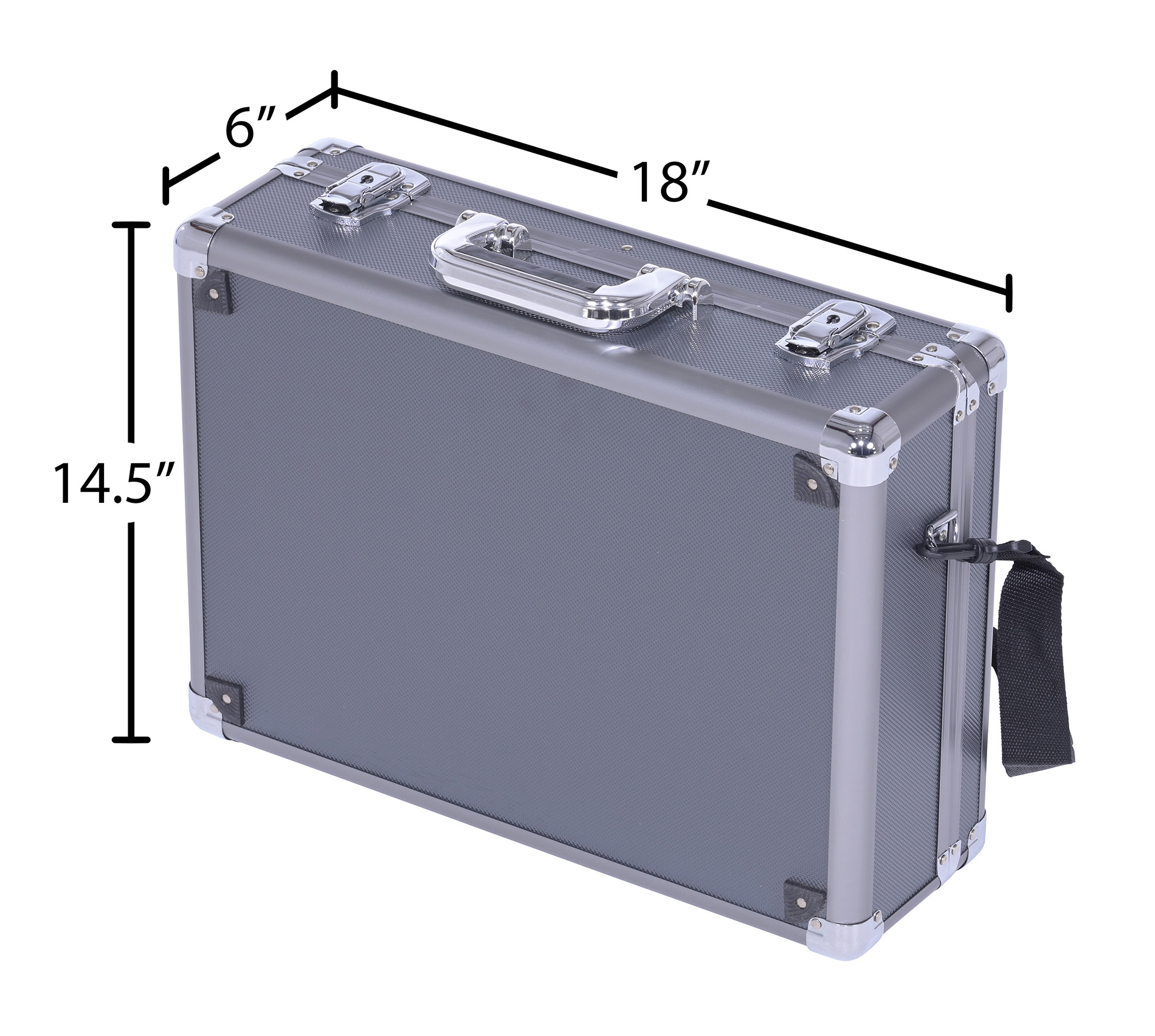 Aluminum Carrying Case 18 In. x 14 In. GrayAn aluminum tool case is a great way to store and transfer tools. The aluminum construction is hardy and can withstand the harsh elements of daily use, keeping items safe. With a compact design, the unit is perfect for on the go or left in a stationary place. Sleek smooth finish promotes simple handling.