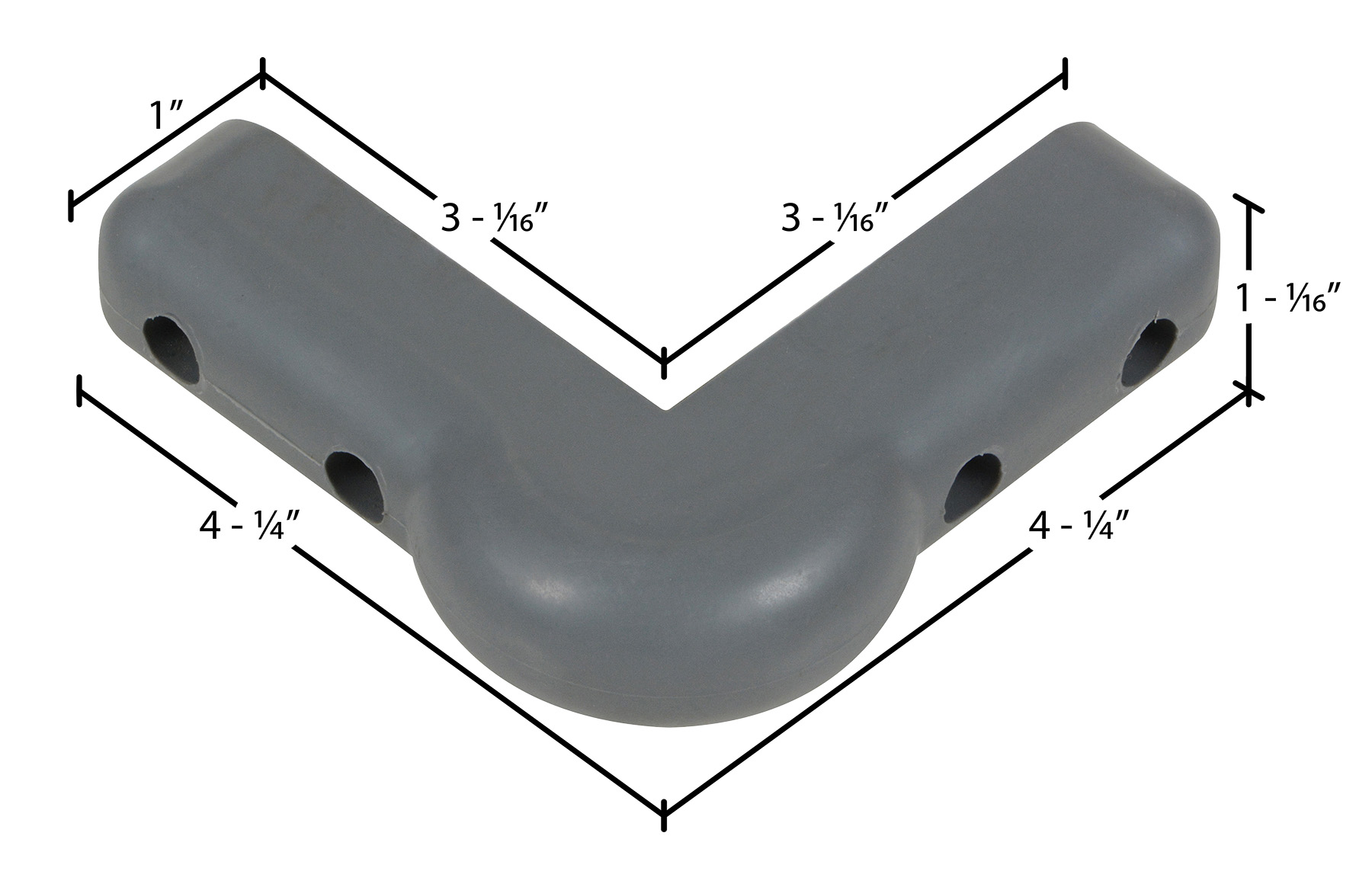 Rubber Corner Guard 12 Pieces 1-1/16 In. GrayThe corner and surface guard/bumper will reduce damage to walls, furniture and machinery from cart and platform truck impact. Thermoplastic rubber construction with steel insert provides impact absorption. Easily attaches to any steel, aluminum, wood, or plastic surface. Mounting hardware not included.