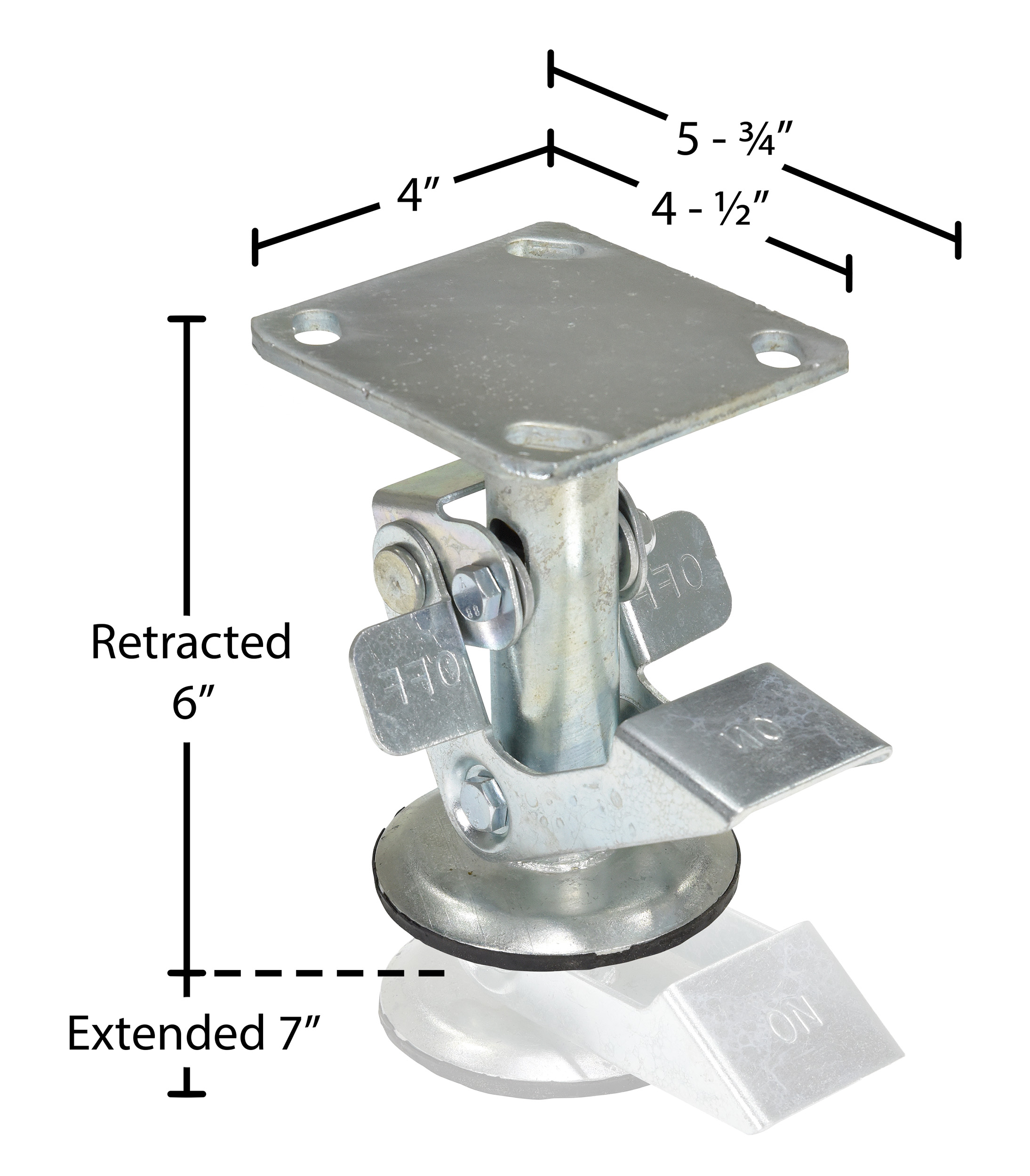 | Mounting Height (in.): 7 | Height Retracted (in.): 6 | Caster size (in.): 5 |