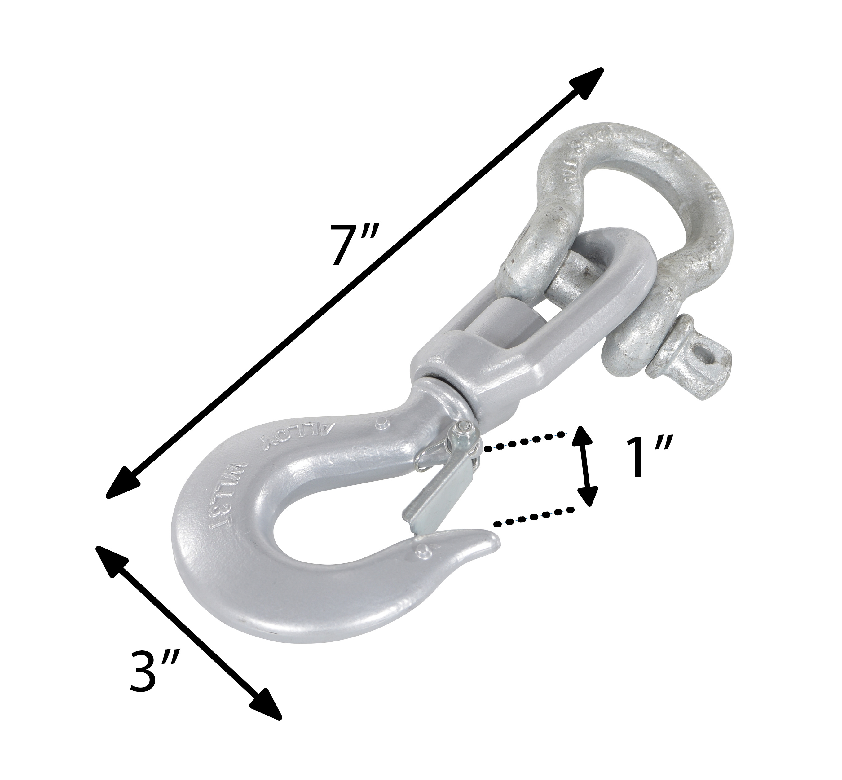 Steel Swivel Hook with Shackle 6,000 Lb. Capacity SilverEasily connect to hoisting hooks, hook plates or booms using a swivel hook with shackle.