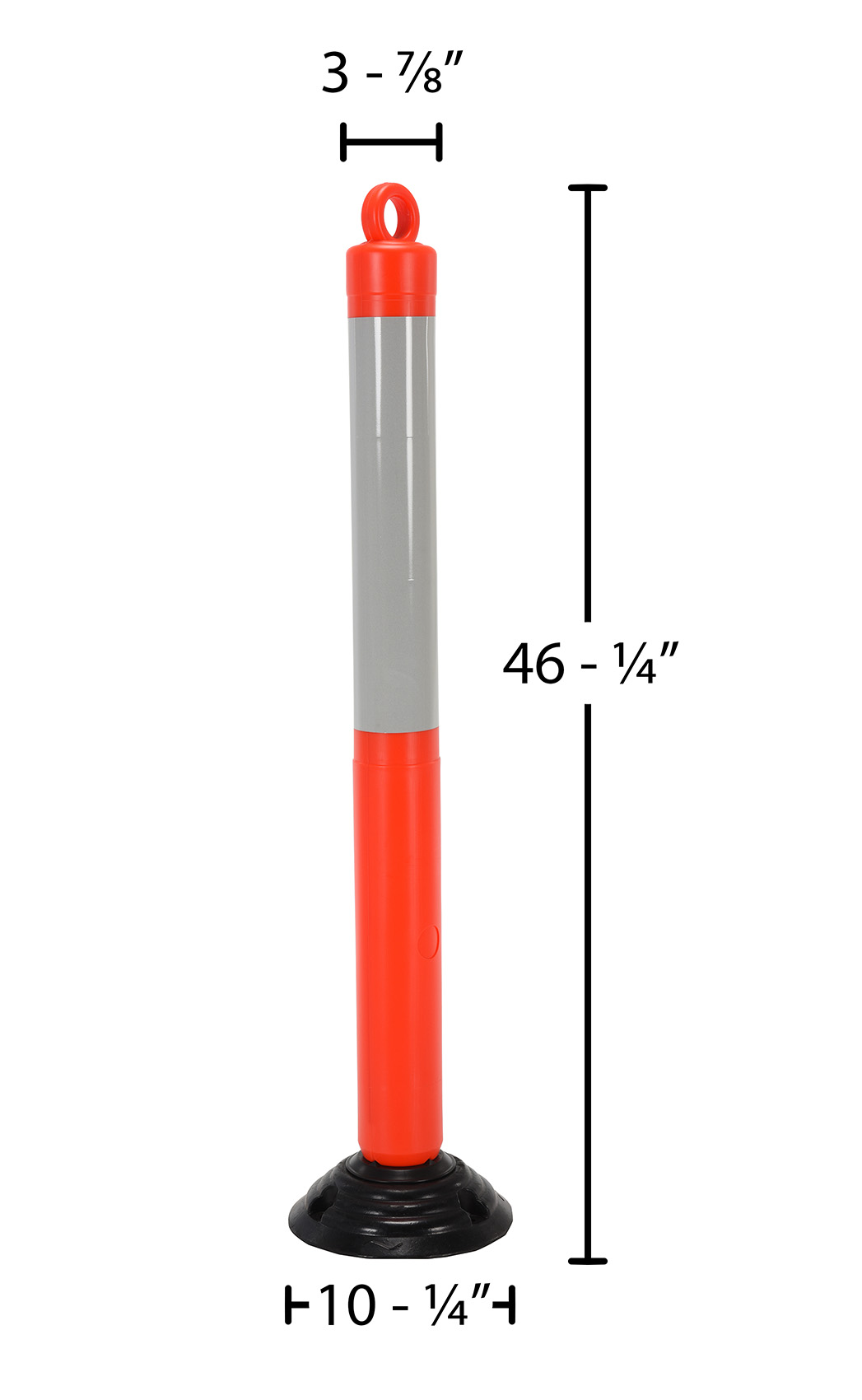 Plastic Bollard 10-1/4 In. x 10-1/4 In. x 46-1/2 In. Height Fluorescent OrangePlastic bollards are engineered for safety and the reduction of accidents. A fluorescent orange color scheme with white reflective tape promotes safety and visibility. A loop located at the top of the unit enables easy handling and is ideal for any workplace. Spring loaded for forgiveness when contact by an outside force. Base has 3 holes for mounting to surface. Hardware for mounting base is not included.