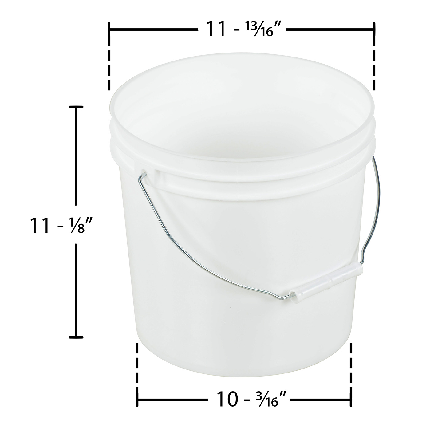 High Density Polyethylene Open Head Pail with Steel Handle 11-13/16 In. x 11-13/16 In. x 11-1/8 In. 3-1/2 Gallon WhiteThe open head pail is ideal for the construction and shipping areas. Strong enough for use in shipping applications and durable enough for the most demanding storage applications. This unit can be used with hot liquids as well as freezer applications.
