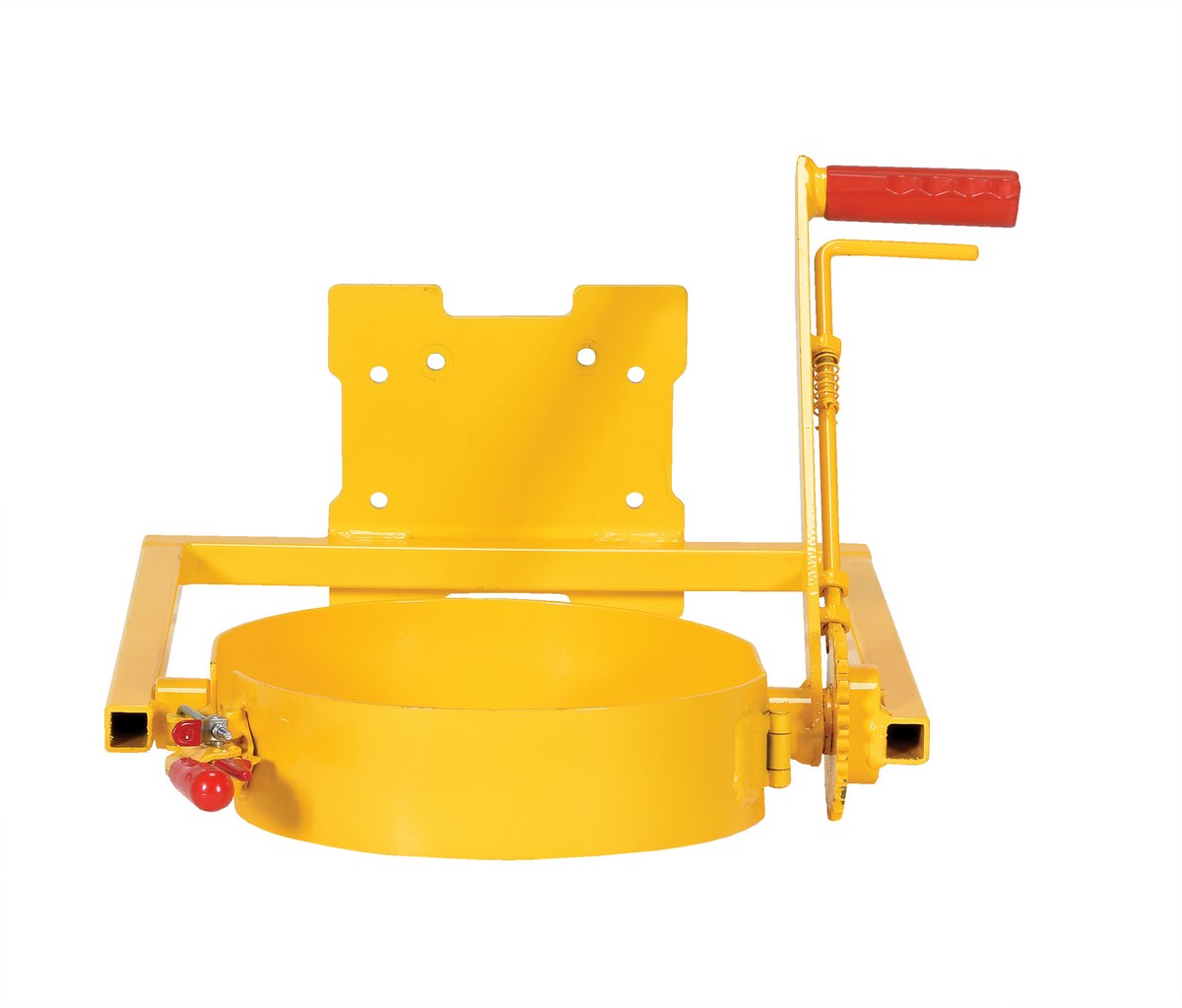 The pail attachment is designed for lifting, rotating and dumping pails. The unit is adjustable to accommodate pail sizes. The manual dumper lets the user unload the pail at the rate that best fits the conditions. A simple installation allows the user to obtain immediate use and diminish the amount of bending and lifting of heavy objects. A yellow finish promotes visibility and safety while transferring units.