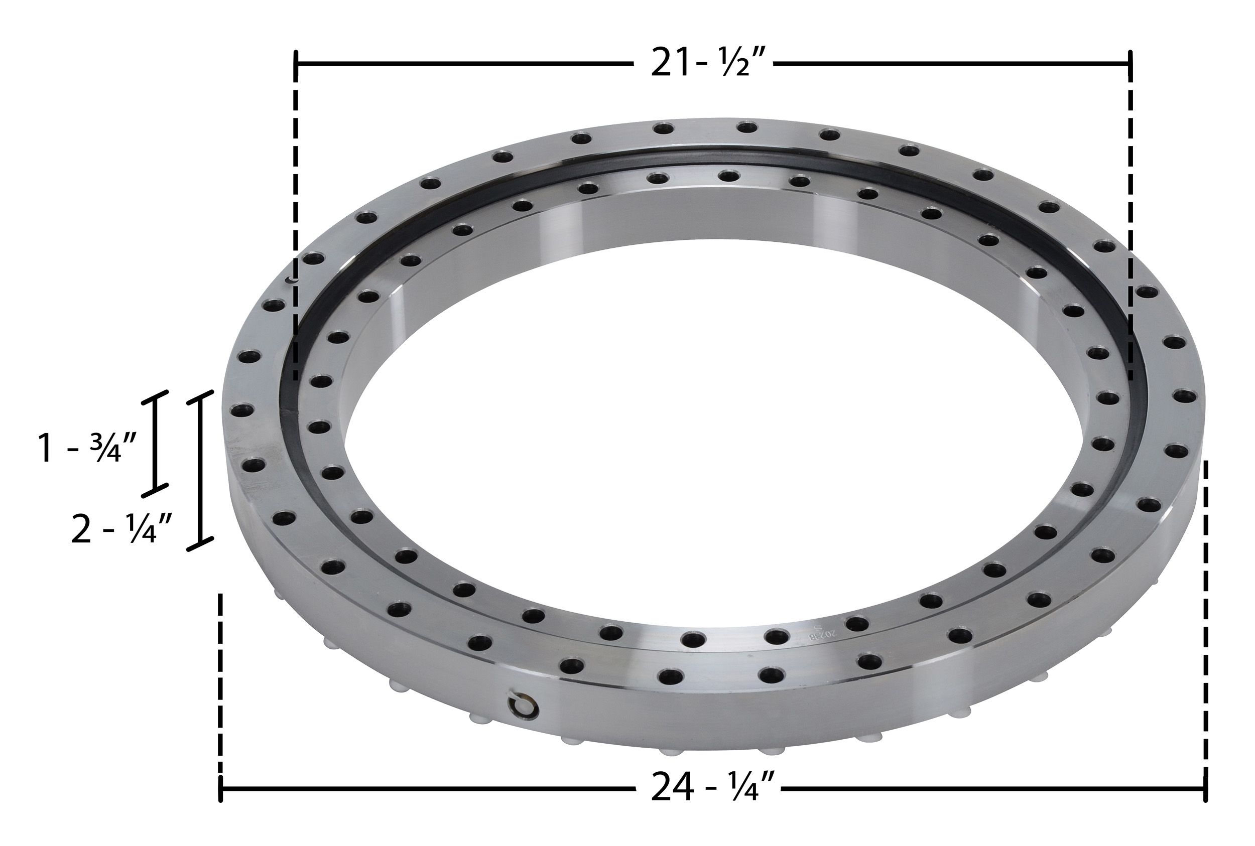 Steel Precision Turret Bearing 24-1/4 In. x 24-1/4 In. x 2-1/4 In. 6,000 Lb. Capacity SilverThe precision turret bearing is ideal for consistent turntable maneuvering. The bearing is able to meet the most precise degree, when they matter most. The unit can be used as a stand-alone carousel in a variety of manufacturing settings. With a lightweight construction the bearing is easily transported and turned softly during procedure.